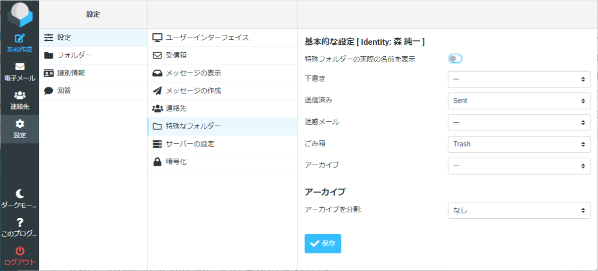 という感じで、 users テーブルの preferences フィールドに含まれていることがわかります。上記の例だと draft_mbox, sent_mbox, junk_mbox, trash_mbox といった特殊なフォルダに対する設定と思われるものが見られます。