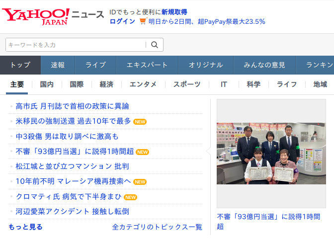 from selenium import webdriver from selenium.webdriver.common.by import By driver = webdriver.Chrome() driver.get("https://news.yahoo.co.jp") print(driver.title) headlines = driver.find_elements(By.CSS_SELECTOR, "#uamods-topics > div > div > div > ul a") for headline in headlines: print(headline.text) #driver.quit()