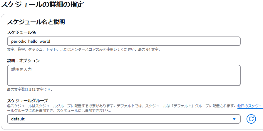 『スケジュールグループ』というのを設定して、スケジュールをグループ分けすることもできるようです(今回はデフォルトのグループとしています)。