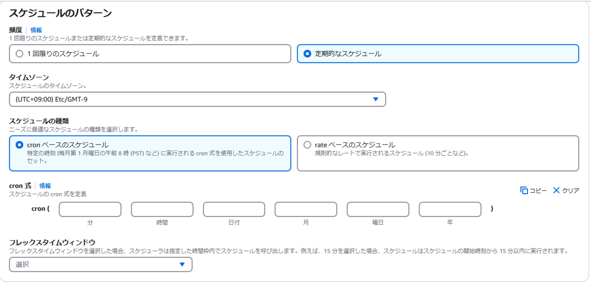 今回は cron ベースの『定期的なスケジュール』を作成することにします。まず、タイムゾーンを選択します。