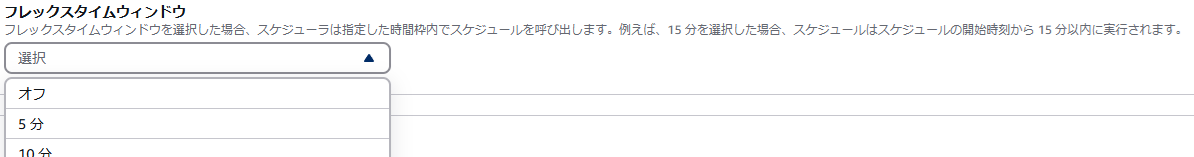 実行時にどれだけの幅を持たせるかを指定する時間枠になります。今回の例だと、あまり意味がないので、『オフ』としました。