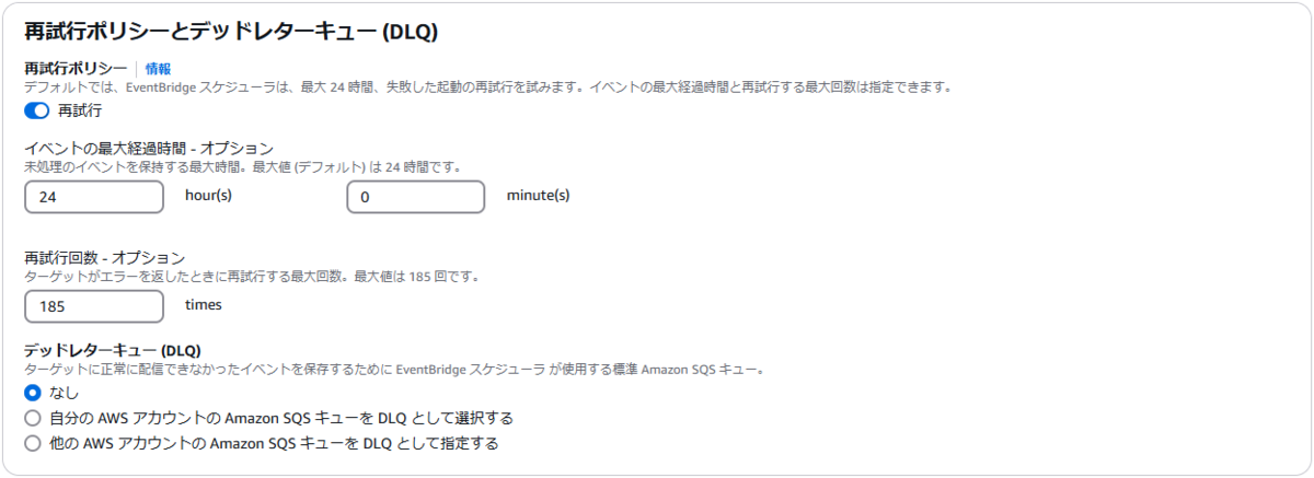 スケジューラーの実行に失敗した場合の再試行とデッドレターキューを設定することもできます。