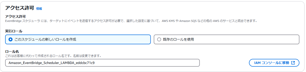 また、アクセス許可の部分で、新しいロールを作成するようにしました。
