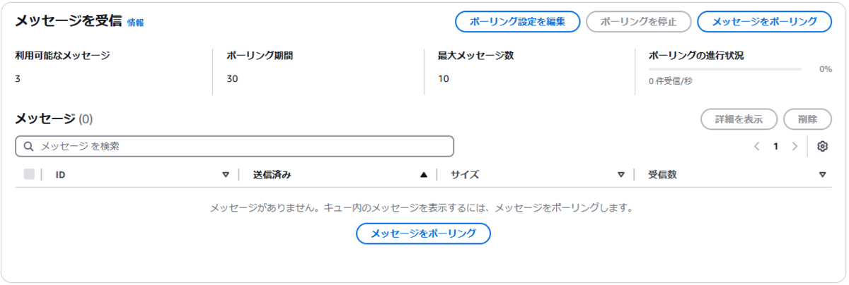 さらに『メッセージを受信』のところで、『メッセージをポーリング』ボタンをクリックすると、