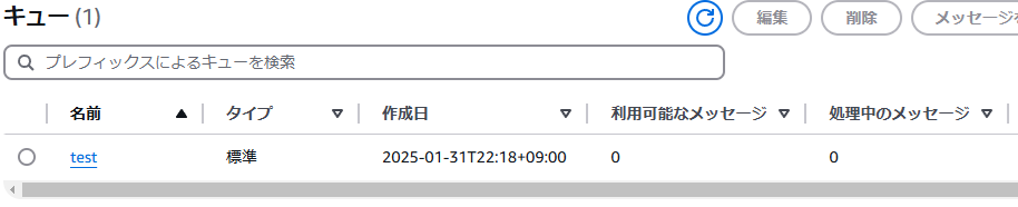 aws のコンソールで SQS を開いて、『キューの作成』を選択します。